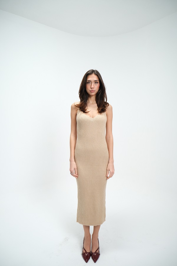 Bej Fitilli Elbise Hırkalı Takım -MTE001B